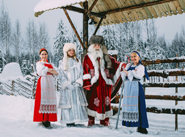 День: А затем отправляемся на долгожданную встречу с Дедом Морозом! Едем в Карельское поместье Деда Халла (80 км от Петрозаводска). Живет Дед Халла в очень большом уютном доме с камином. Вместе с ним и хозяйкой Инкери в поместье живут помощники-домовята. В эти новогодние праздники они ждут нас в гости, чтобы научить кататься на старинных лыжах-«шукшах» и санях-«подкури», закружить в хороводе Крууга. Каждый гость собственноручно сделает талисман на память. Есть у Деда Халла и своя почта, откуда можно отправить открытку с печатью поместья в любую точку мира (не забудьте заранее узнать свой точный почтовый адрес с индексом, чтобы Ваш новогодний привет из Карелии Вас обязательно нашел!) А если вы хорошо себя вели в этом году, то Дед Халла встретится с Вами в своем кабинете, а может, даже исполнит Ваше новогоднее желание! Здесь же нас накормят вкусным обедом.