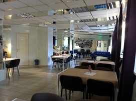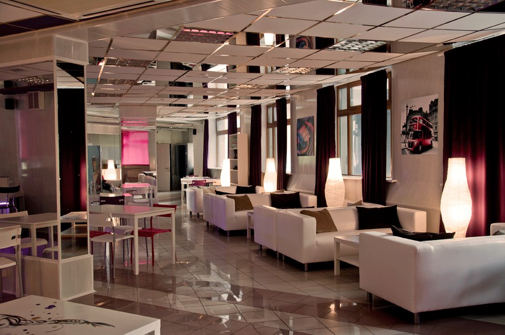 Размещение: площадь анти кафе составляет 200кв. метров - общий зал с удобными диванами и креслами, зал для занятий, кинозал, уголки для Х-box. Есть гарбероб, где ребята оставляют свою верхнюю одежду и переобуваются в сменную обувь. Там же можно оставить на все каникулы ролики и скейтборды - при наличии сухой погоды мы обязательно покатаемся по удобным и ровным дорожкам соседнего парка.