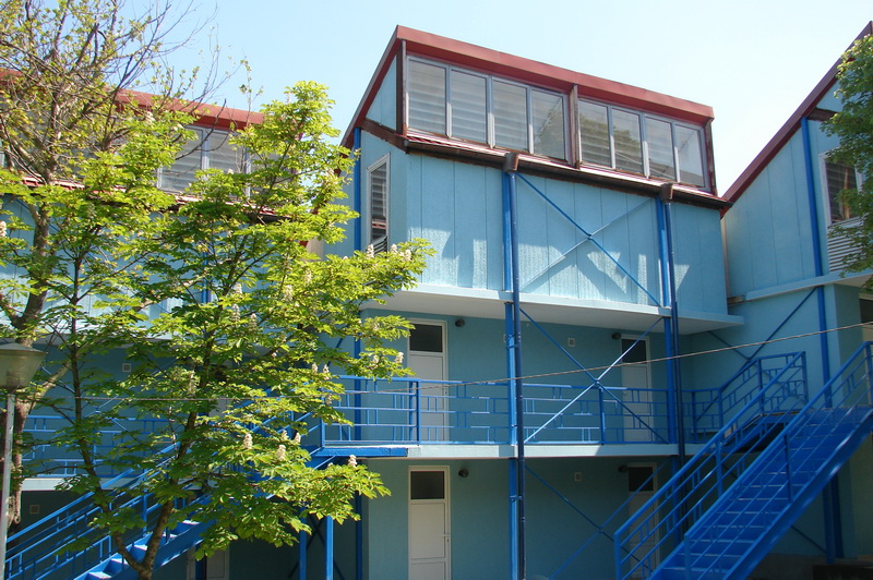 Архитектура: двухэтажные здания капитальной постройки с балконами, с 3-х-5-и местным проживанием, с удобствами в номере. Сделан евроремонт санузла, косметический ремонт номеров.